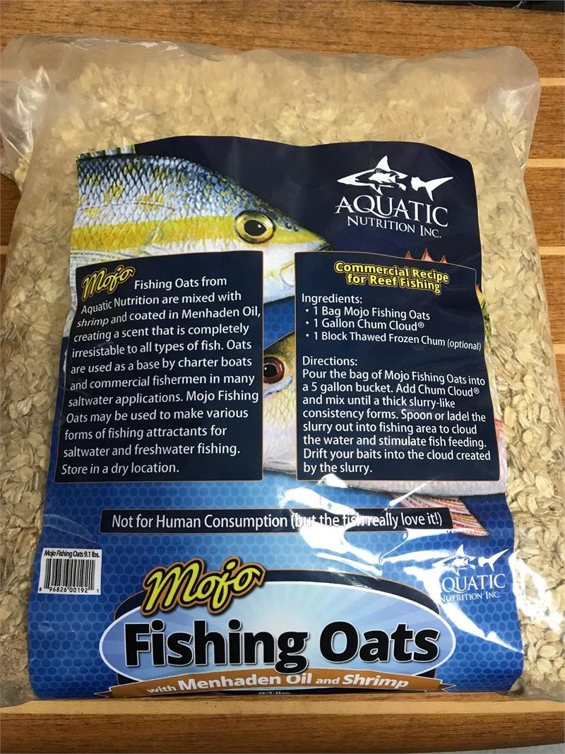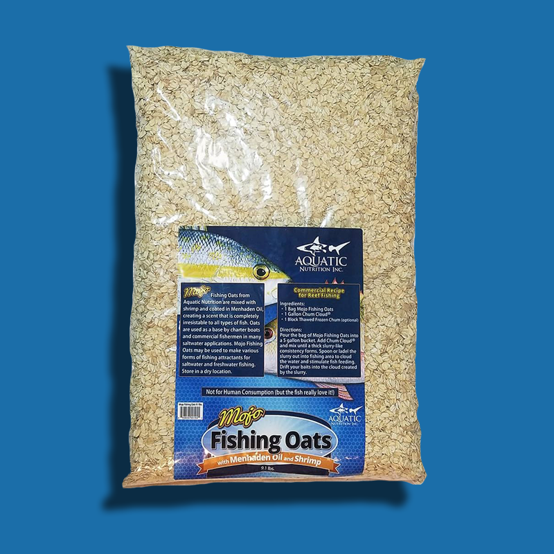 Mojo Fishing Oats is a 9.1 lb bag of dried oats that have been soaked in menhaden oil and mixed with ground shrimp. Sprinkle them in dry to bring the fish right up to the surface or mix them with water to make a sinking chum that covers the water column. You can also use them as a base to build the ultimate chum. These oats are dry so there is no need for refrigeration or freezing. Mojo Fishing Oats also work great for chumming up ballyhoo and other bait fish. Bag is resealable.