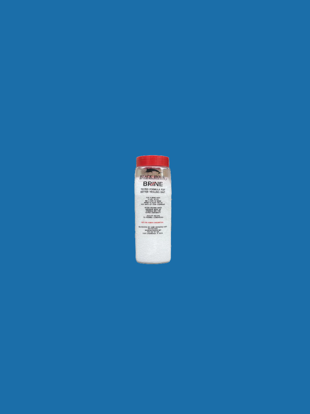 Top Secret brine formula produced exclusively by Black Hook and sold by Blackhook & LmrTackle.com. Professionally tested Formula for better trolling bait. For a brine bath: 10lbs. of ice, mix 2 cups of brine, water to float the ice, add baits, let soak overnight. After rigging baits, arrange belly up, sprinkle mix on bellies for extra durability; Adjust recipe to fishing conditions. Trusted by professionals world wide!!