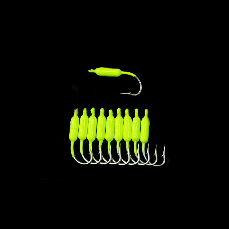 The GO TO lure for Yellowtail Snapper. Just bait the lure with belly strips, silver sides, live shrimp or shrimp chunks. Anchored in a current, feed your line out into the chum trail so the bait floats with the current. This lure will naturally fall with the chum and the fish can't tell the difference. Adjust weight for lighter or stronger currents. Also great for Mangrove Snapper and other reef fish.