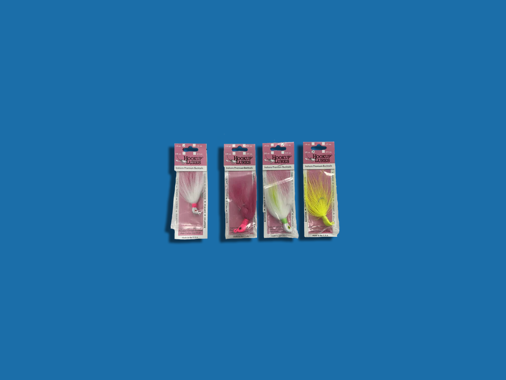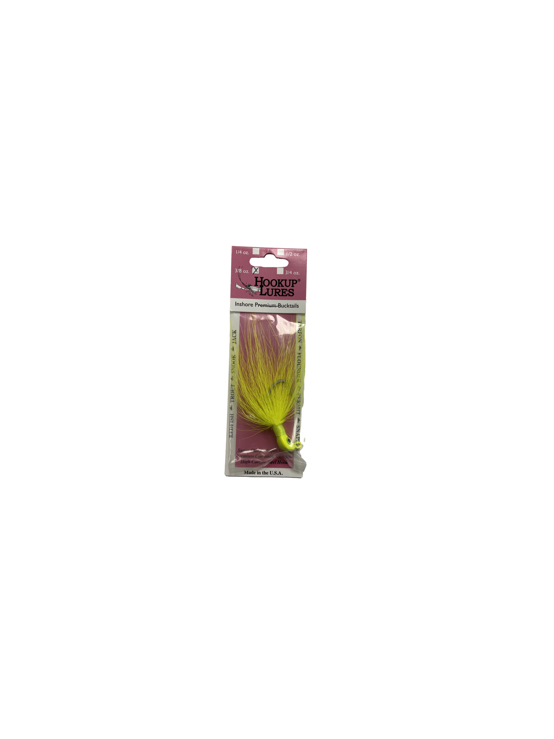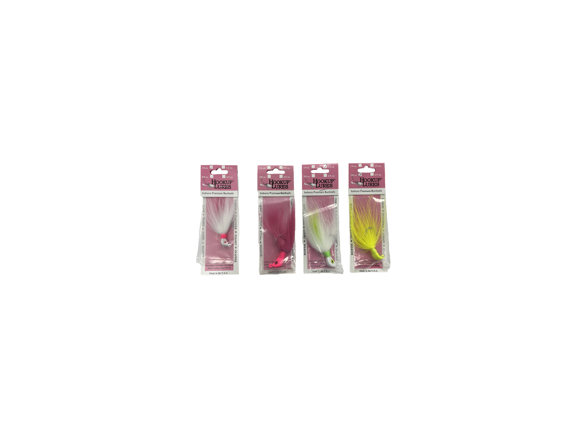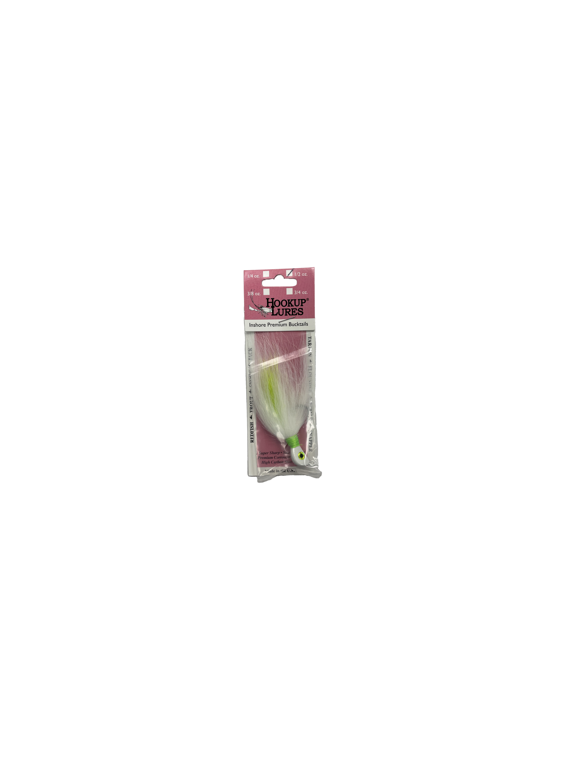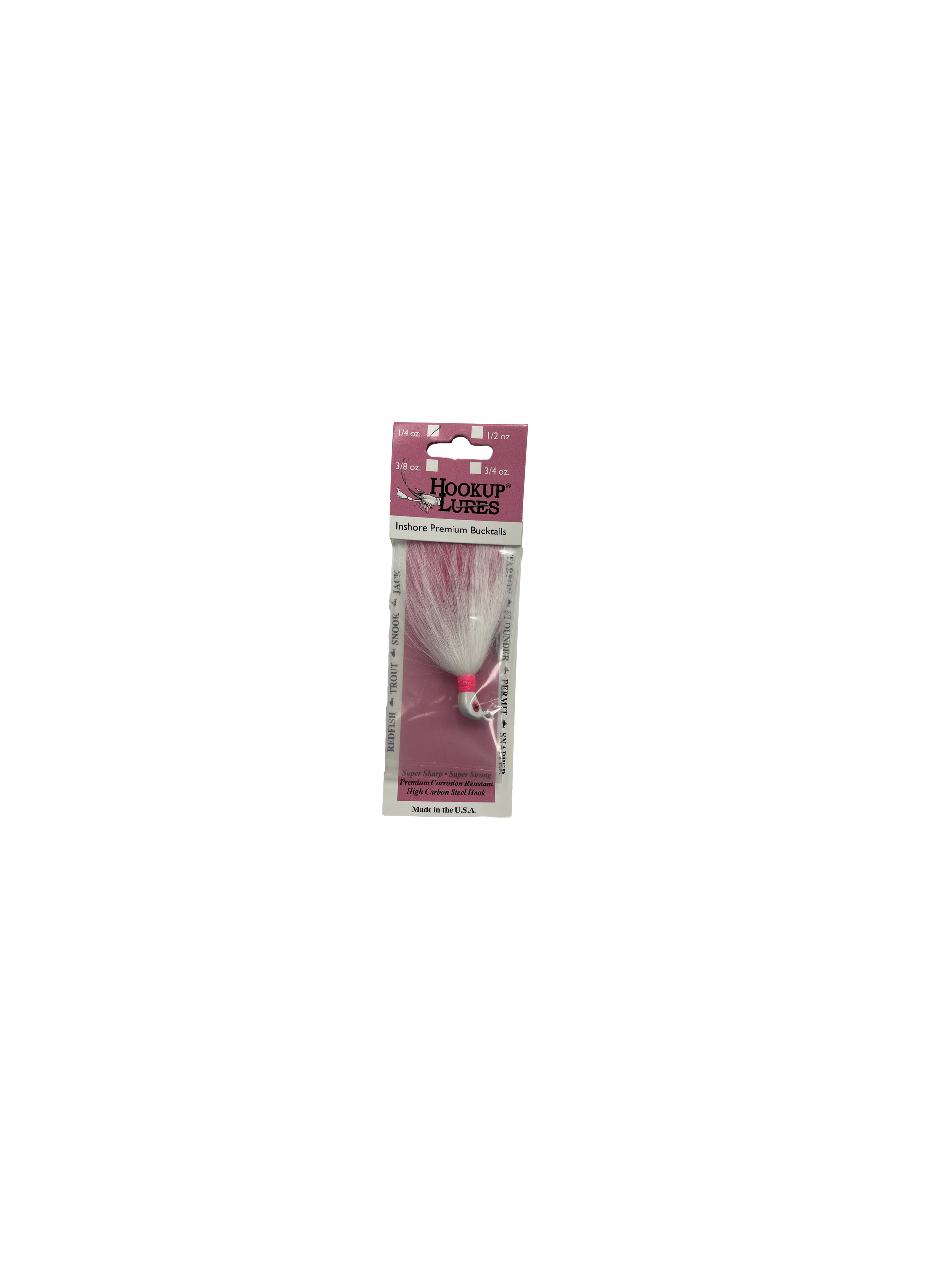 Equipped with American-made, hand-tied bucktails, the Hookup Lures® Inshore Premium Series Bucktail provokes aggressive strike with its flowing, undulating, motion-filled presentation. Great for inshore species; built with VMC® PermaSteel hooks for maximum sharpness and the strength to handle inshore heavy hitters. Made in USA.
