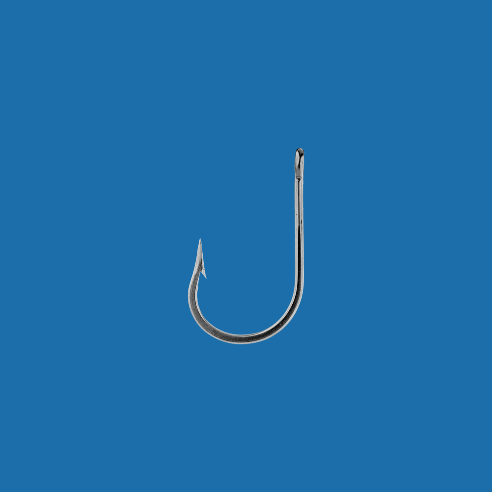 The first stainless big game fishing hook Mustad made. Still a standard hook used for Wahoo and marlin lure rigging. Has a large open bite.