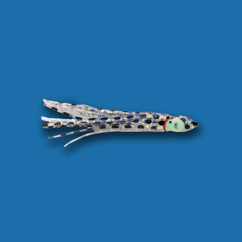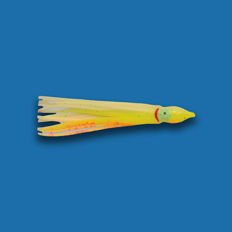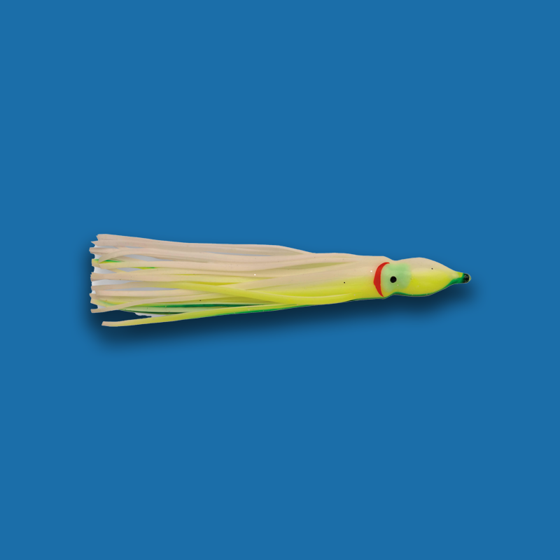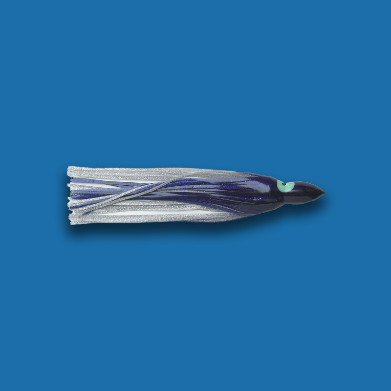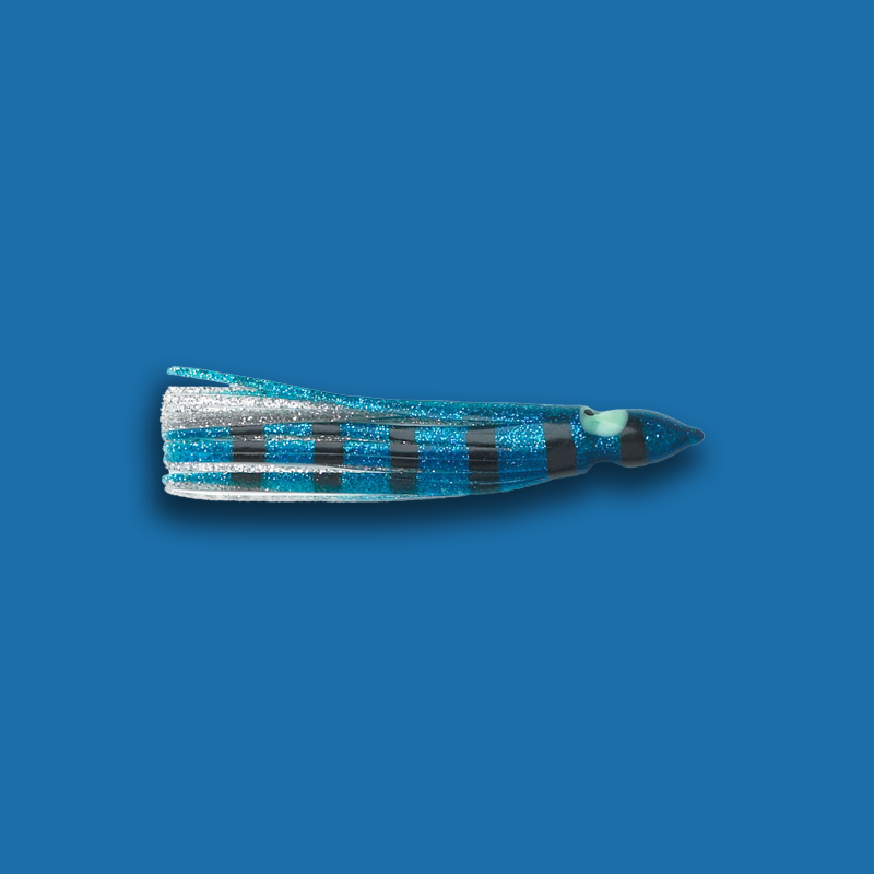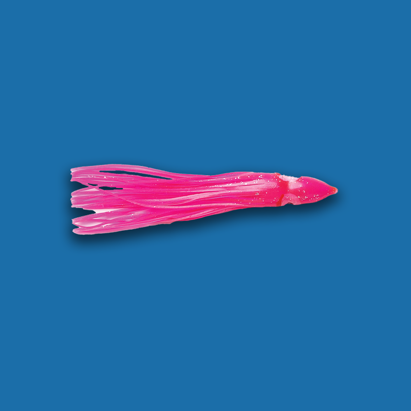 The P-Line Sunrise Squid is the perfect bait for a number of different species. From ocean salmon trollers using the 4.5 inch size, to albacore fishermen rigging the 7.5 inch models in “Daisy Chains”, to marlin fishermen re-skirting their favorite heads with the larger skirts.