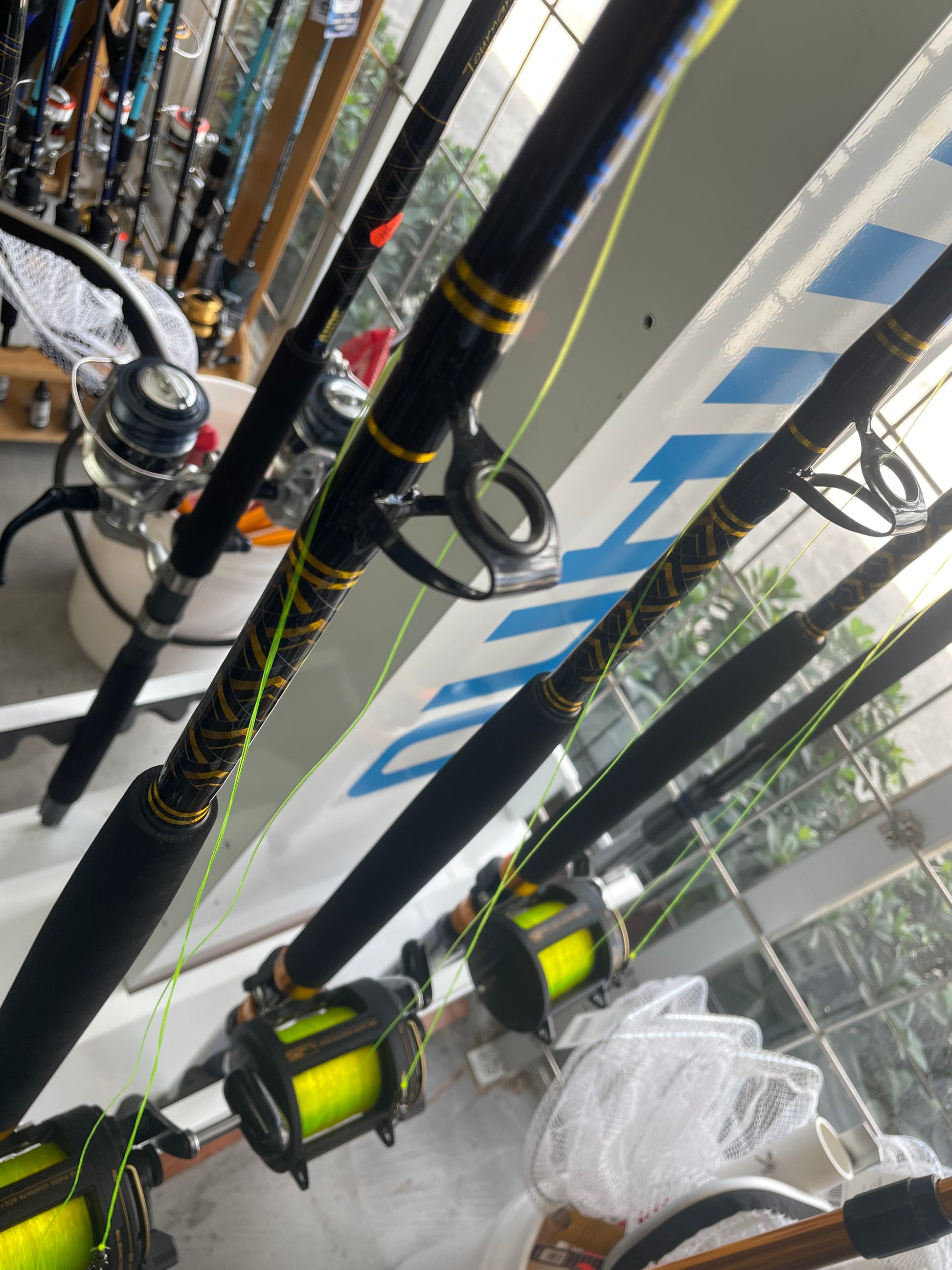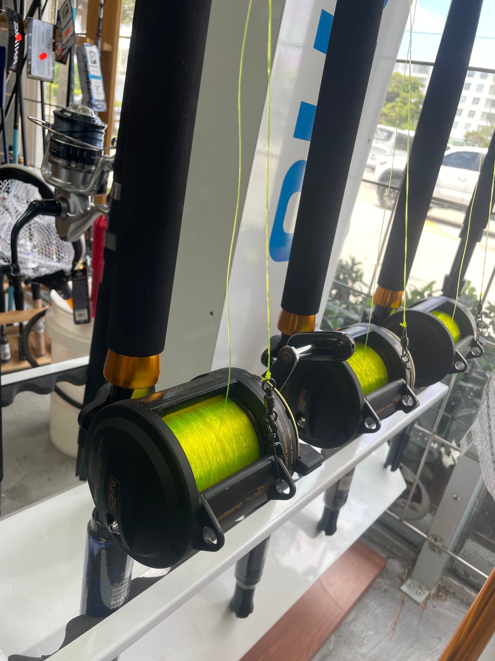 The Shimano TLD 25 matched with the Black Hook 6' 50-80 Standup Rod is a mahis worst nightmare. Spooled with 30lb hi-viz this set up is perfect for surface trolling rigged ballyhoo, feathers, and many more.