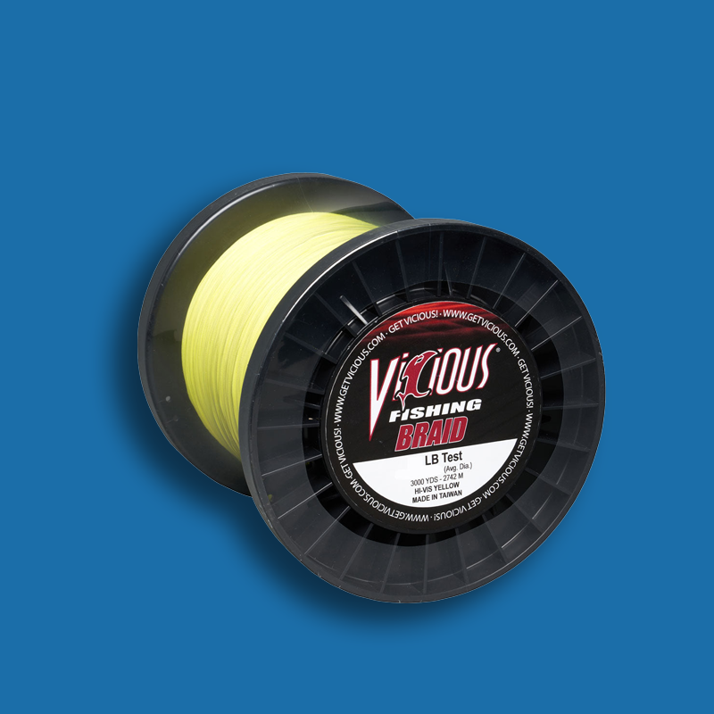 The definitive choice for strength and durability, Vicious Braid excels where monofilament and fluorocarbon fear to tread. Woven with the highest quality PE fibers, the line has virtually no stretch allowing for bite detection at any depth and lightning fast hook sets. Our production process helps eliminate abrasion and makes it resistant to the effects of UV rays and water absorption. For the perfect combination of power and finesse, this is the line you can count on.